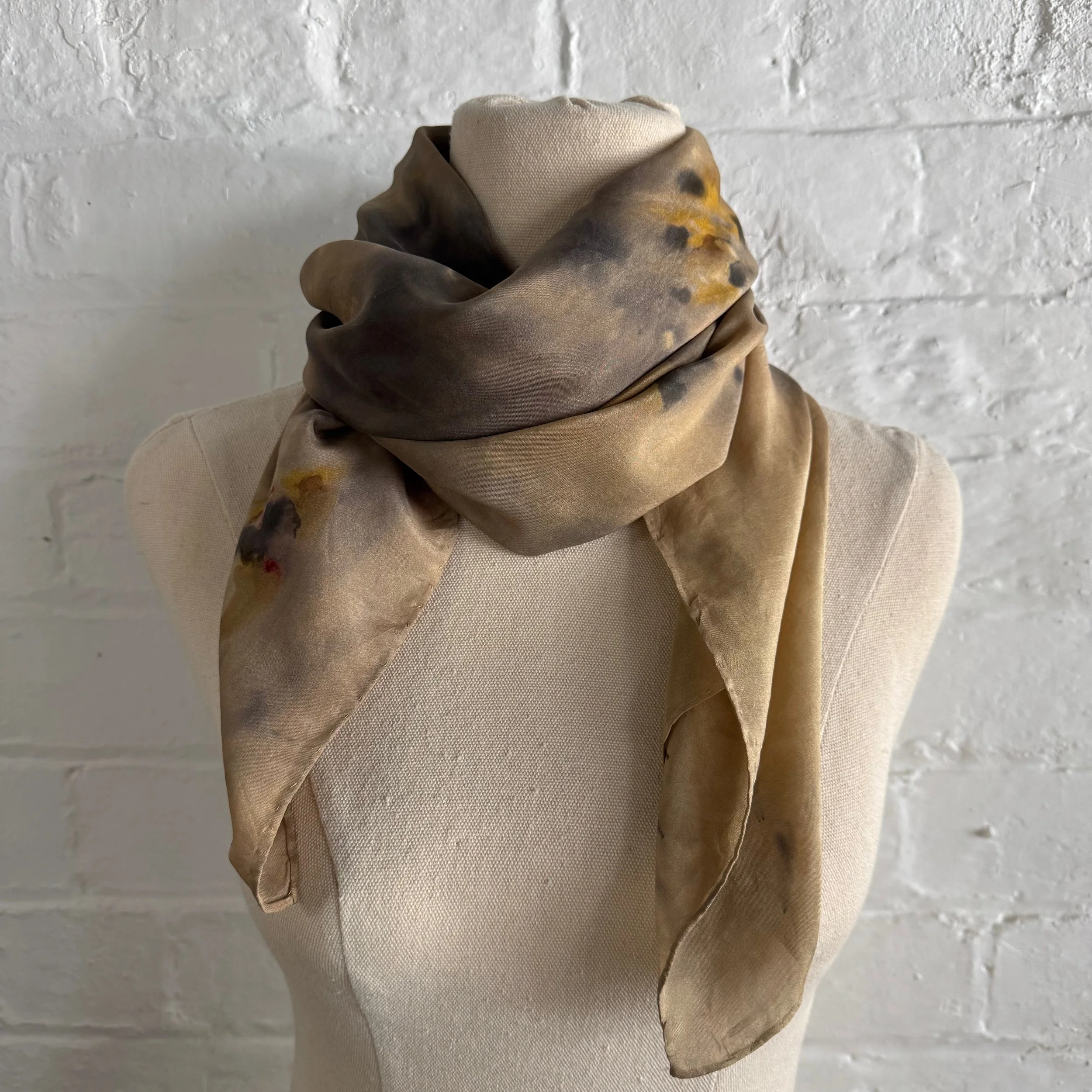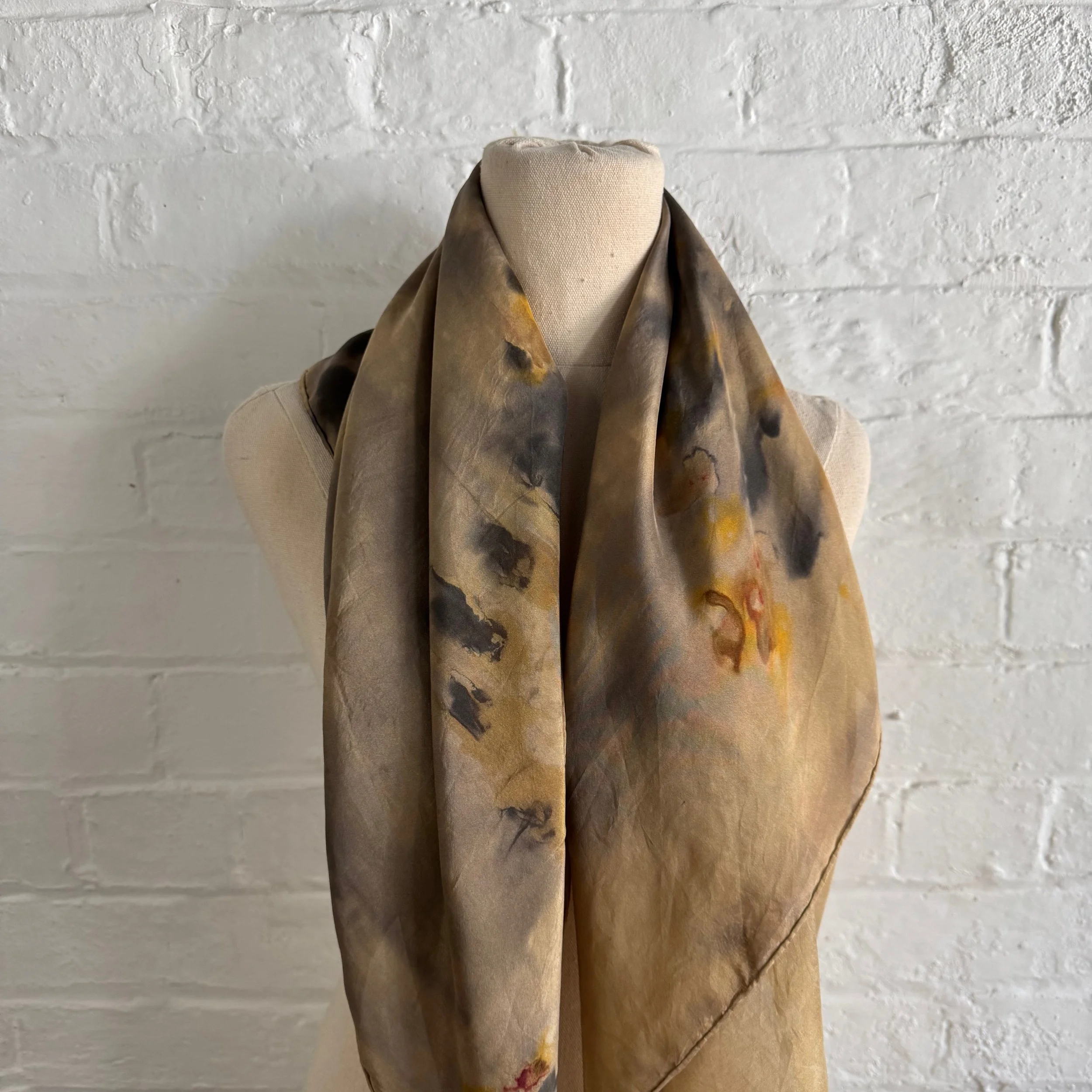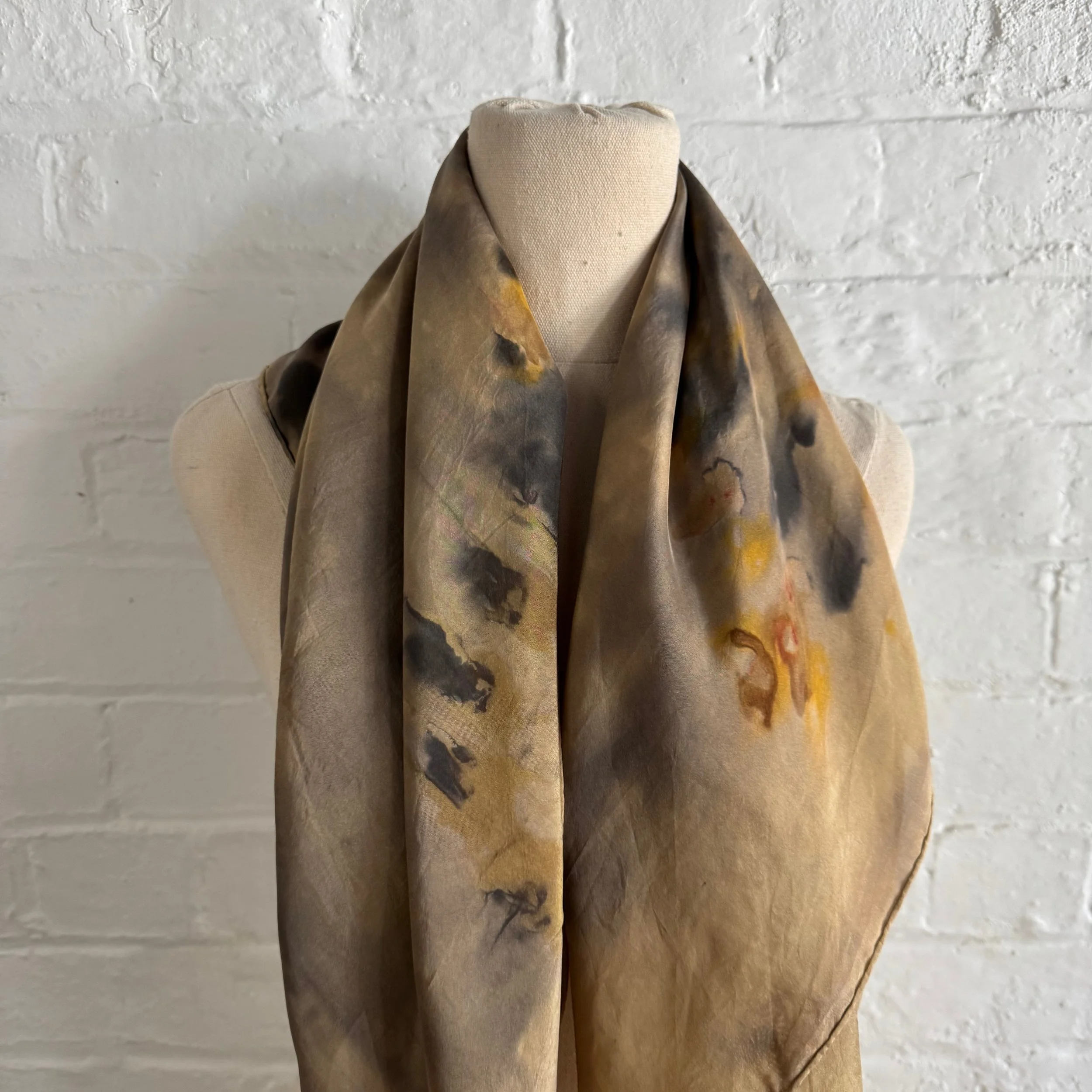 Large Plant-Dyed, Hand-Painted Silk Scarf - Bark