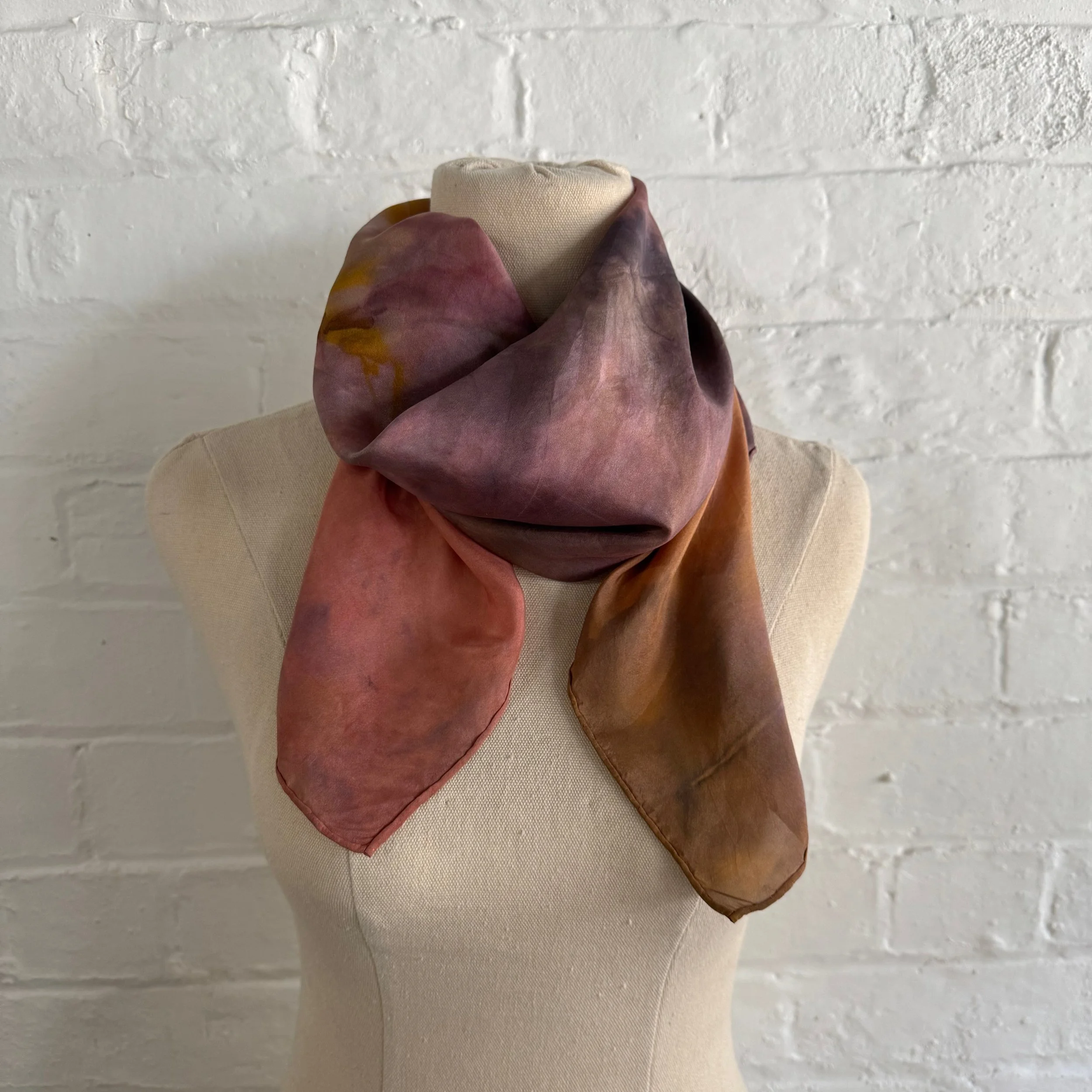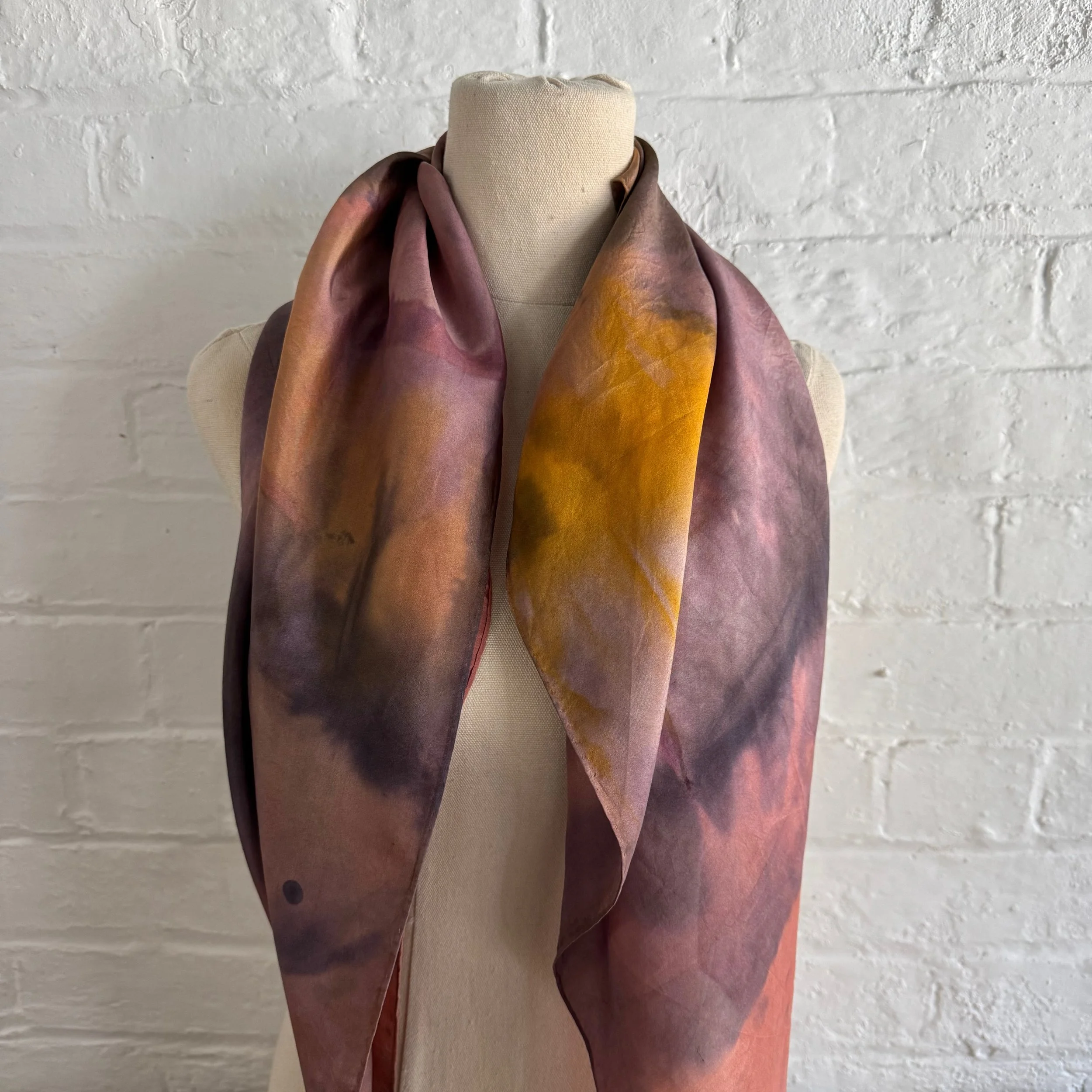 Elevate your wardrobe with our one-of-a-kind, plant-dyed silk scarves. Each scarf is hand-painted using only natural plant pigments, resulting in soft, organic tones and patterns that are entirely unique—no two are ever the same.