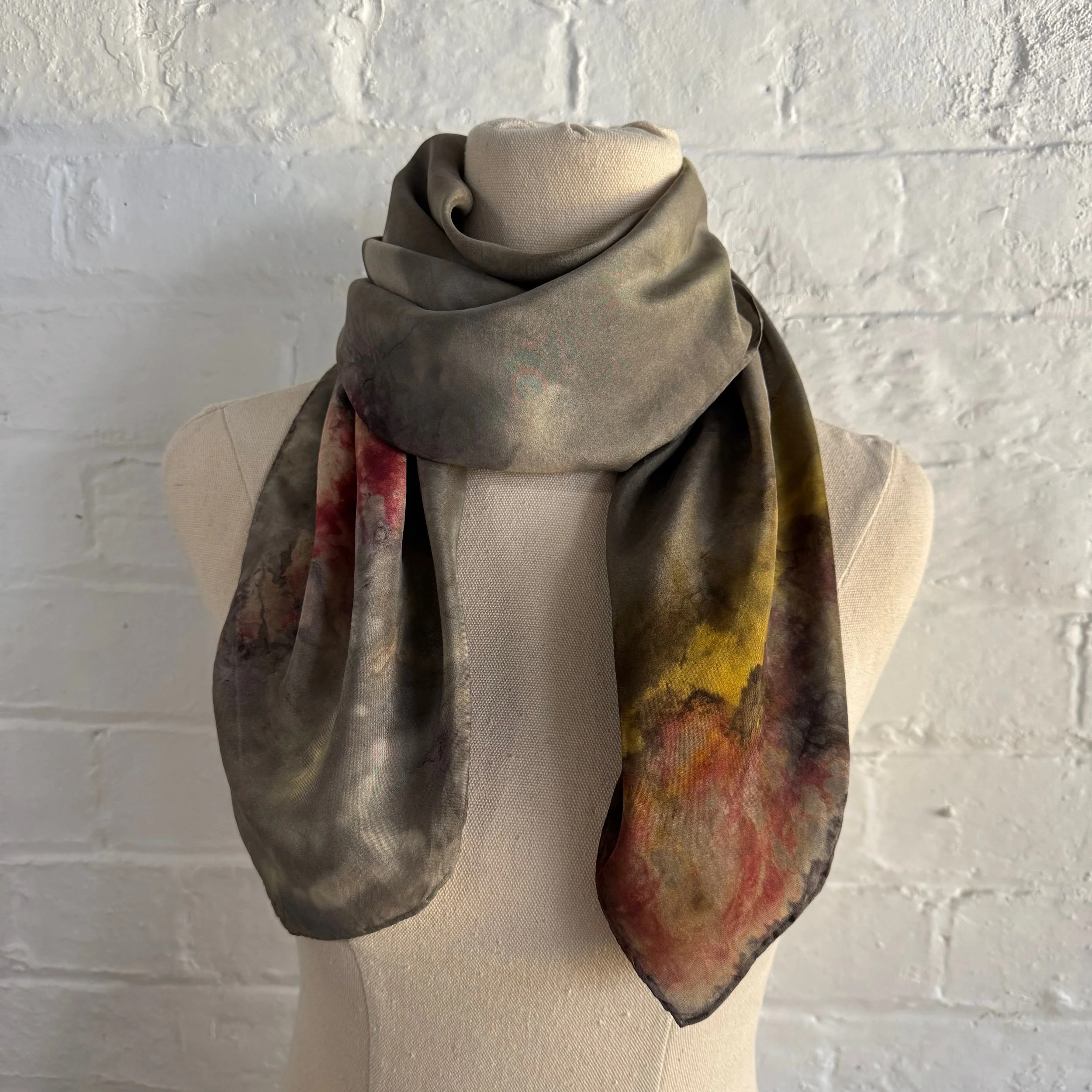 Large Plant-Dyed, Hand-Painted Silk Scarf - Ember