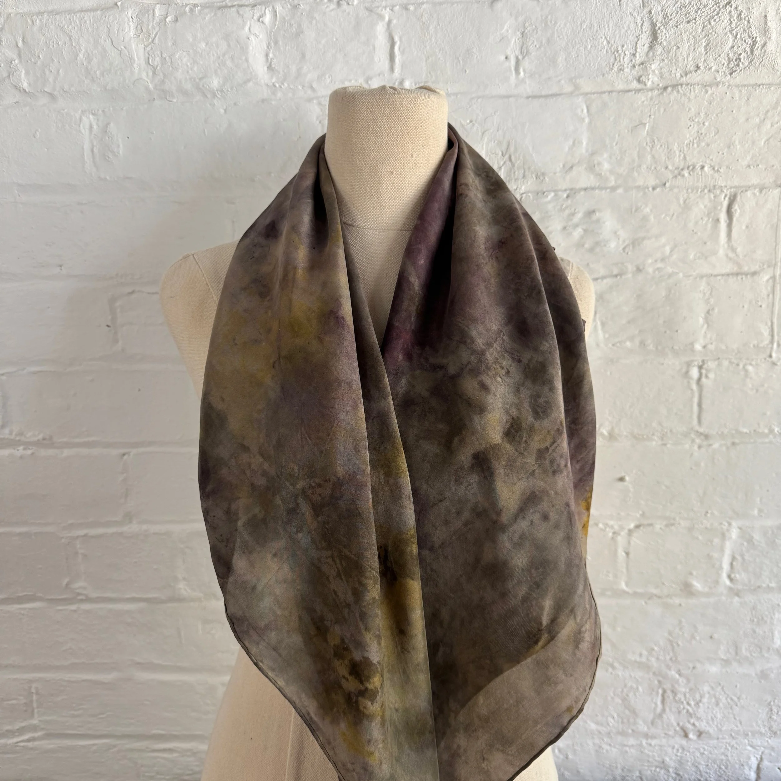 Elevate your wardrobe with our one-of-a-kind, plant-dyed silk scarves. Each scarf is hand-painted using only natural plant pigments, resulting in soft, organic tones and patterns that are entirely unique—no two are ever the same.