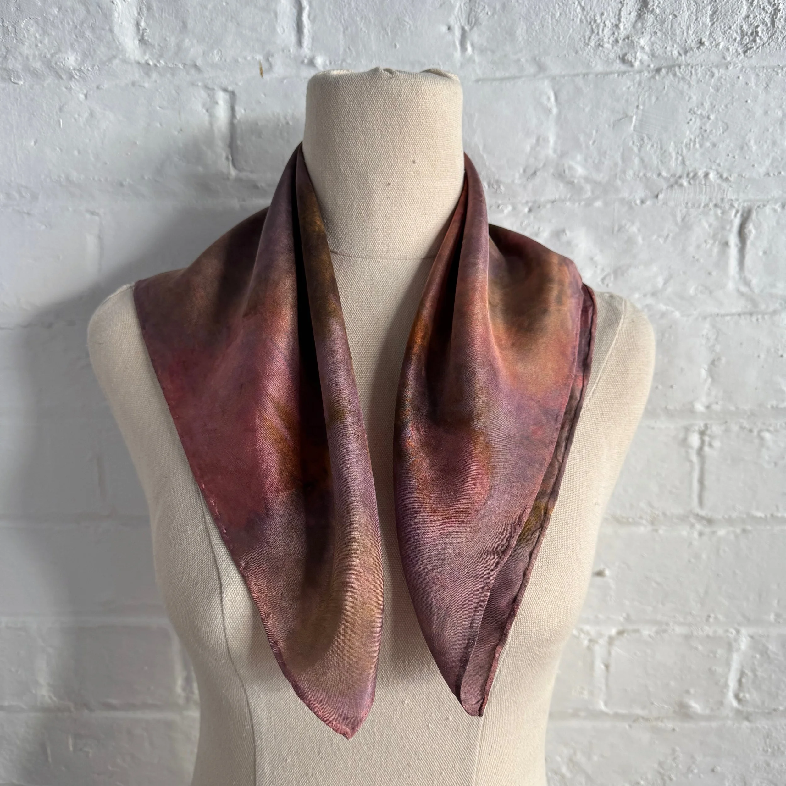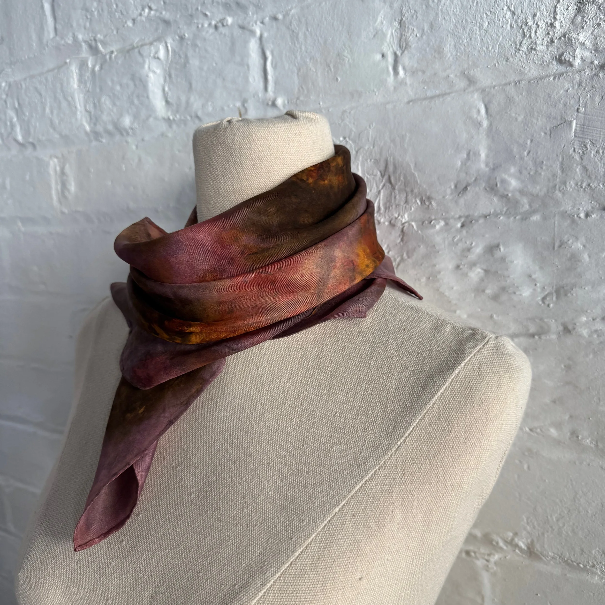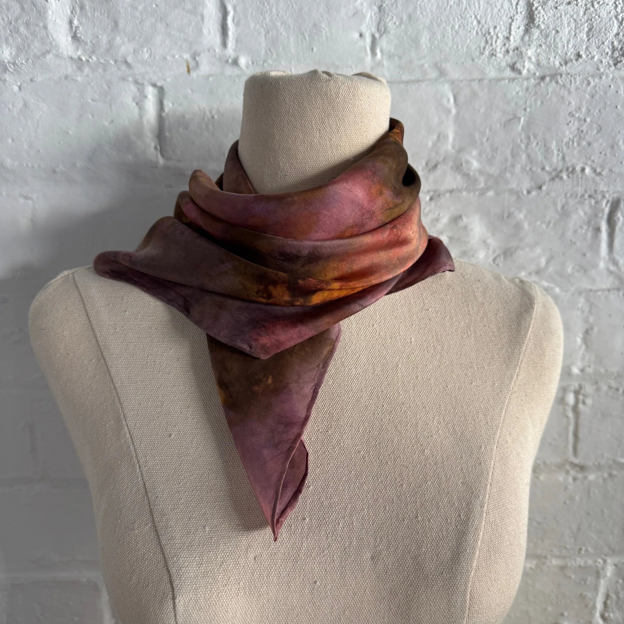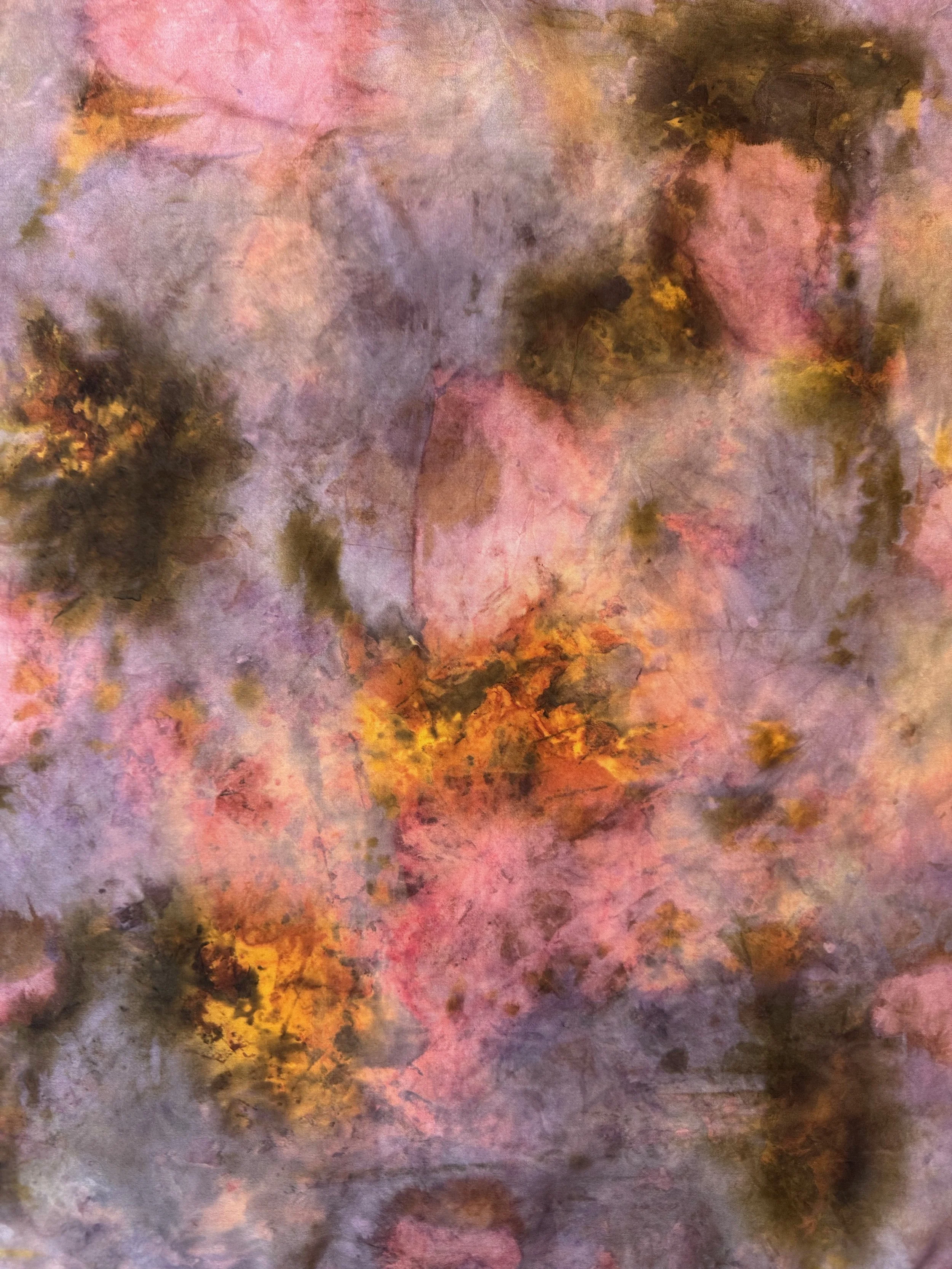 Elevate your wardrobe with our one-of-a-kind, plant-dyed silk scarves. Each scarf is hand-painted using only natural plant pigments, resulting in soft, organic tones and patterns that are entirely unique—no two are ever the same.
