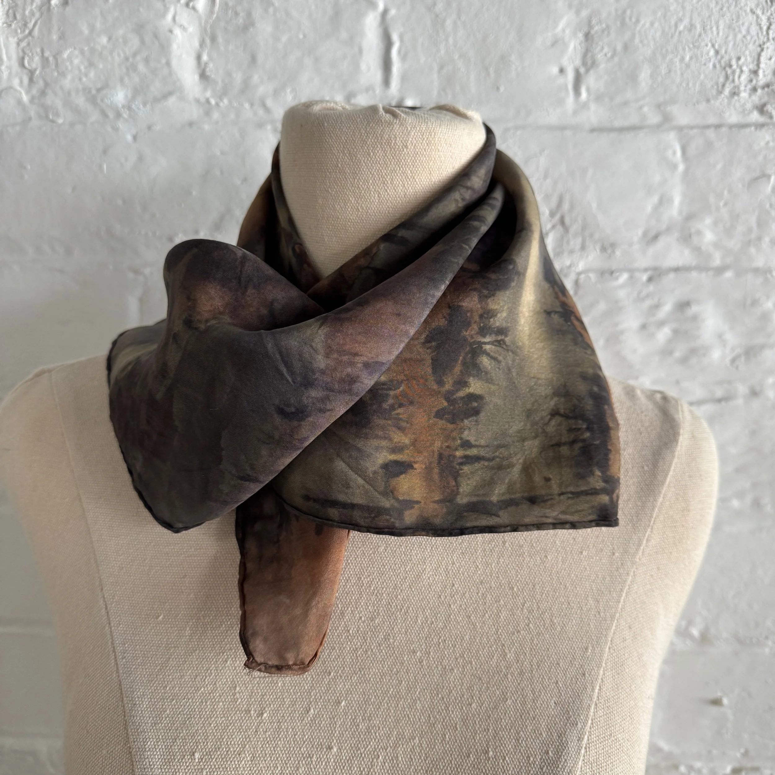 Small Plant-Dyed, Hand-Painted Silk Scarf - Emberwood